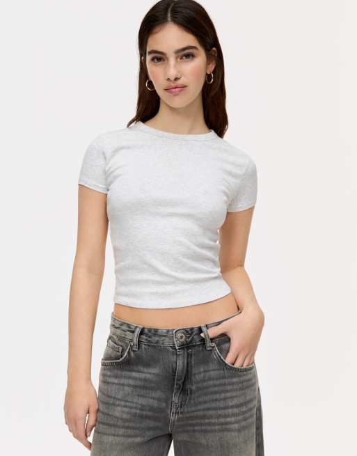Pull&Bear - Gråmeleret figursyet T-shirt