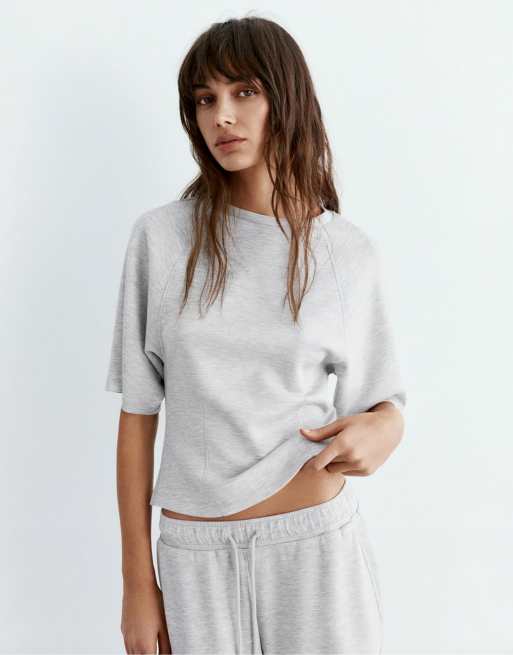 Pull&Bear - Gråmeleret sweatshirt med korte ærmer