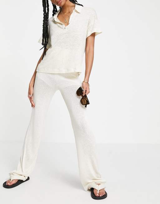 Pull&Bear - Højtaljede og gennemsigtige strandbukser i råhvid