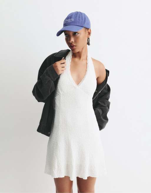Pull&Bear - Hvid kort kjole med halterneck og tekstur