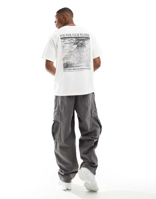 Pull&Bear - Hvid T-shirt med bjergprint på ryggen