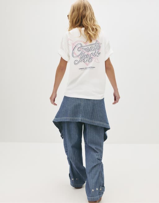 Pull&Bear - Hvid T-shirt med hjertegrafik