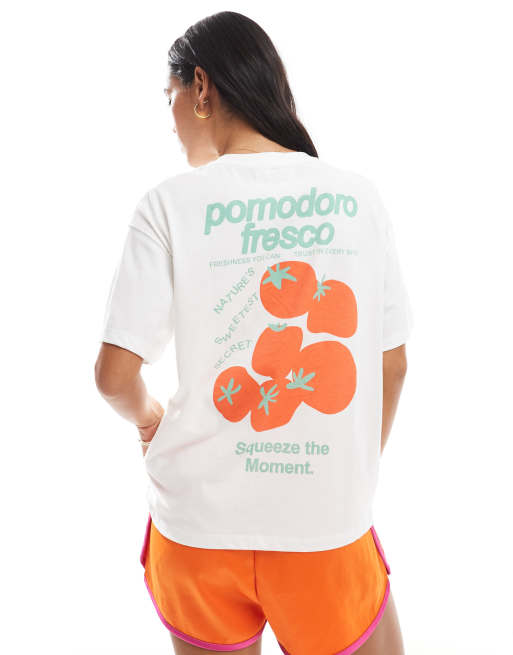 Pull&Bear - Hvid T-shirt med tomatgrafik