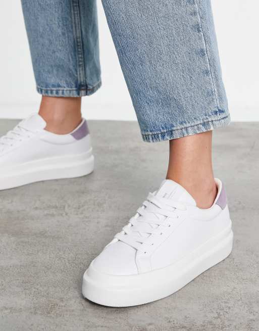 Pull&Bear - Hvide flatform-sneakers med syrenfarvet detalje på hælen