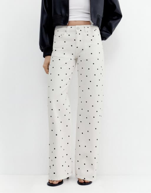 Pull&Bear - Hvide jeans med lige ben og polkaprikker