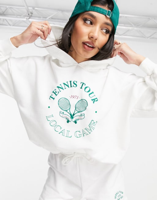 Pull&Bear - Hvidt sæt med sweatshirt og shorts med tennislogo