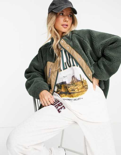 Pull&Bear - Kakigrøn jakke i imiteret lammeskind
