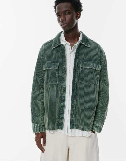 Pull&Bear - Khaki fløjlsskjorte