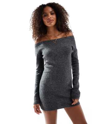 Pull&Bear - Koksgrå offshoulder-minikjole i blød strik