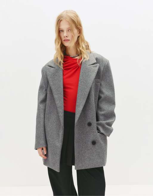 Pull&Bear - Kort og skræddersyet gråmeleret frakke med filtet tekstur