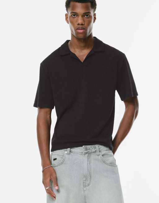 Pull&Bear - Kortærmet og strikket sort poloskjorte