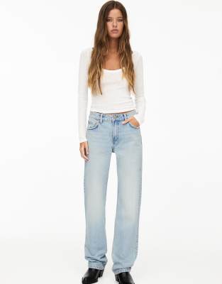 Pull&Bear - Lyseblå jeans med mellemhøj talje og lige ben