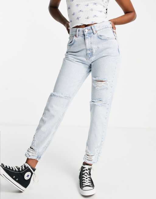 Pull&Bear - Lyseblå skinny-jeans med flænger