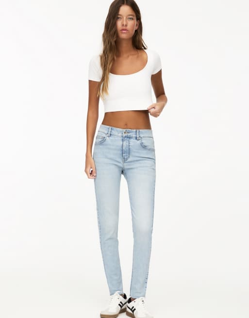 Pull&Bear - Lyseblå skinny-jeans med mellemhøj talje
