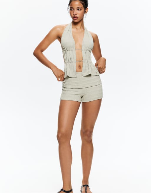Pull&Bear - Lysegrønne rustikke shorts med foldet talje
