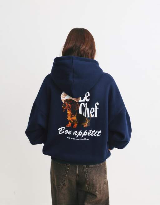 Pull&Bear - Marineblå hættetrøje med 'Chef'-hundeprint