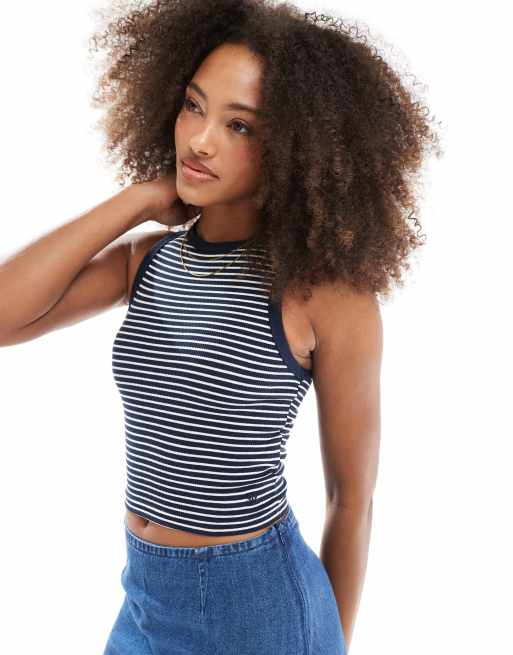 Pull&Bear - Marineblå ribstrikket racertop med striber