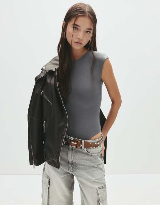 Pull&Bear - Mellemgrå bodystocking med korte ærmer