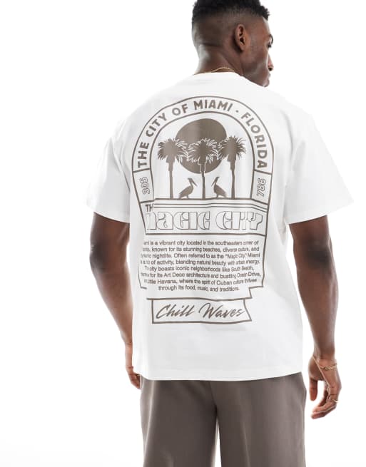 Pull&Bear - Miami - Hvid T-shirt med grafisk bagside