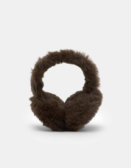 Pull&Bear - Mørkebrune ørevarmere i imiteret pels