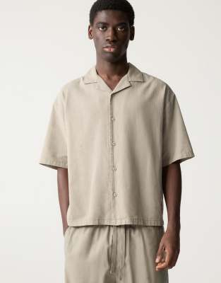 Pull&Bear - Okkerfarvet skjorte med korte ærmer i hørblanding