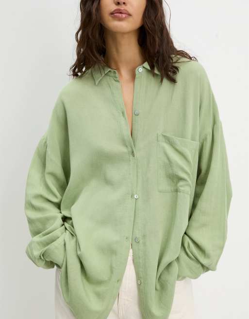 Pull&Bear - Oversized grøn skjorte i hørlook
