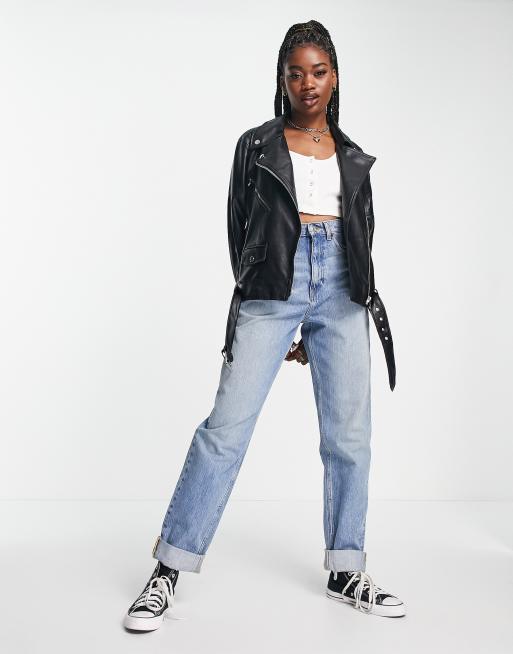 Pull&Bear - Oversized jakke i sort, imiteret læder
