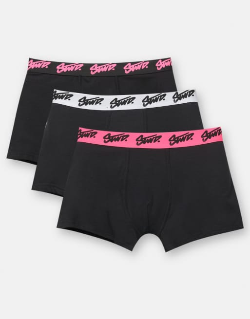 Pull&Bear - Pakke med 3 par sorte boksershorts med lyserødt/multifarvet taljebånd med 'STWD'-logo