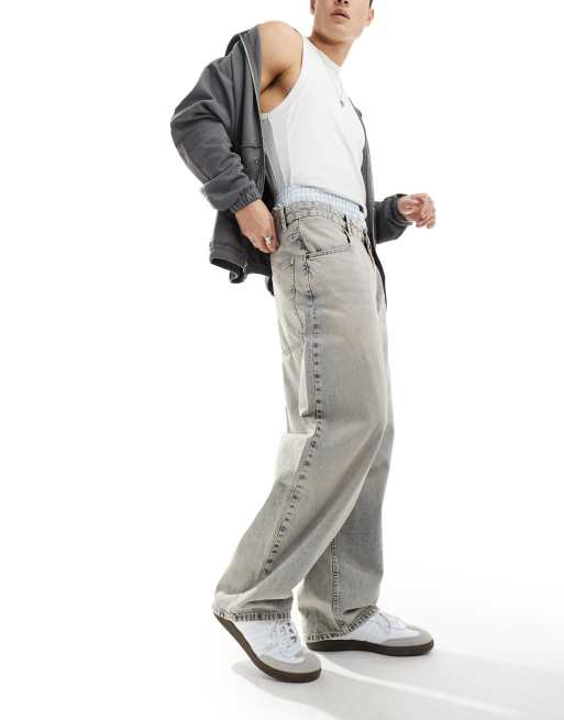 Pull&Bear - Posede skater-jeans i vasket blå
