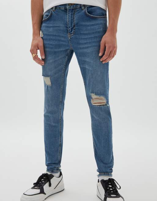 Pull&Bear - Premium - Skinny-jeans med flænser i blå