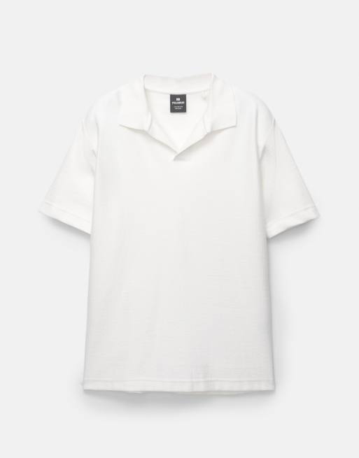 Pull&Bear - Råhvid poloskjorte med korte ærmer og tekstur