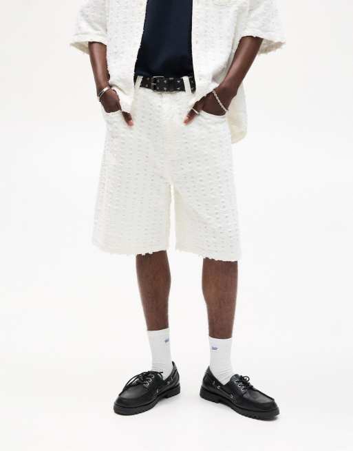 Pull&Bear - Råhvide posede bermudashorts med tekstur i denim
