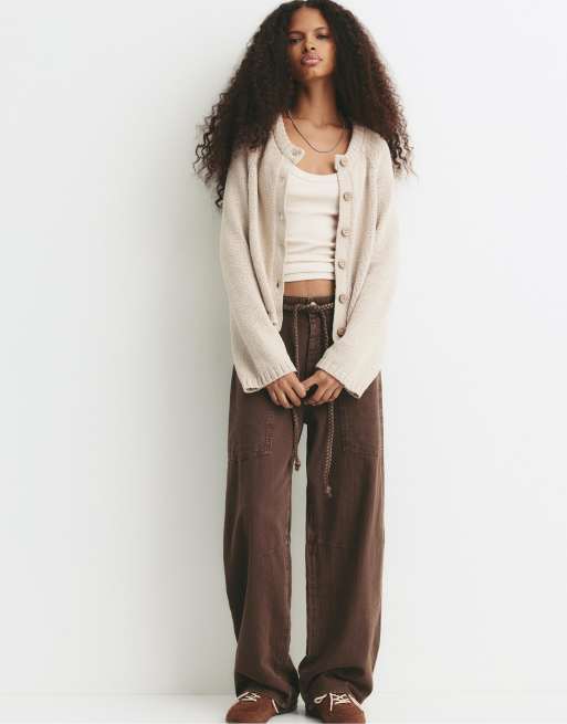 Pull&Bear - Sandfarvet cardigan med raglanærmer