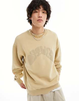 Pull&Bear - Sandfarvet sweatshirt med STWD-print foran