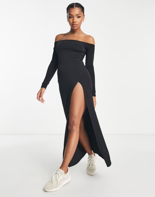 Pull&Bear - Sort langærmet bardot-maxikjole
