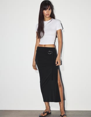 Pull&Bear - Sort midinederdel med metalspænde