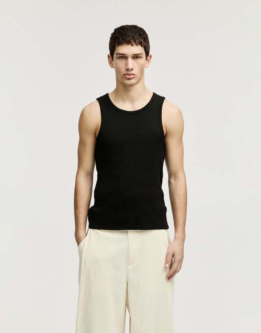 Pull&Bear - Sort ribstrikket tanktop