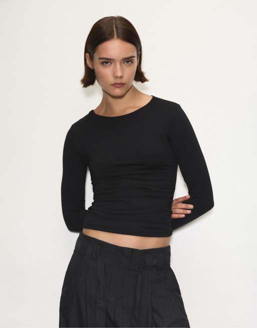 Pull&Bear - Sort T-shirt med åben ryg i polyamid