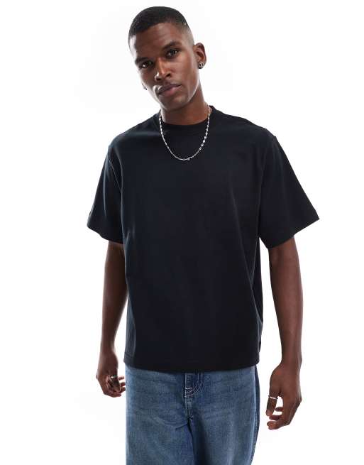 Pull&Bear - Sort T-shirt med firkantet pasform og blød overflade