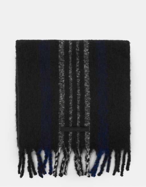 Pull&Bear - Sort tørklæde med frynser og striber