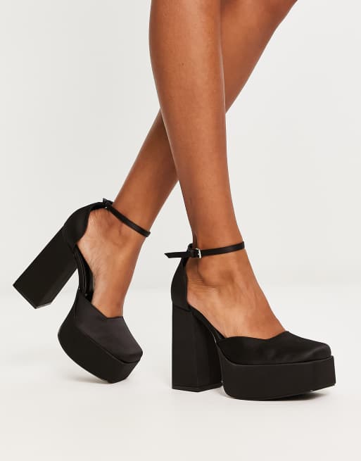 Pull&Bear - Sorte plateausandaler med høj hæl og firkantet snude