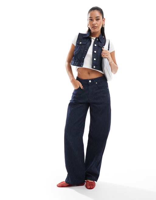 Pull&Bear - Sæt med habitvest og jeans med striber i mørkeblå skyllevask