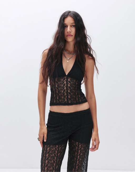 Pull&Bear - Strikket sort halterneck-top i blondestof