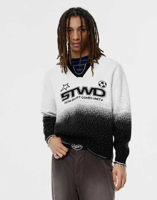 Pull&Bear - STWD - Hvid/blå strikket poloskjorte i fodboldstil