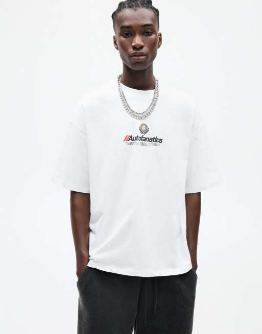 Pull&Bear - STWD - Hvid T-shirt med print på ryggen