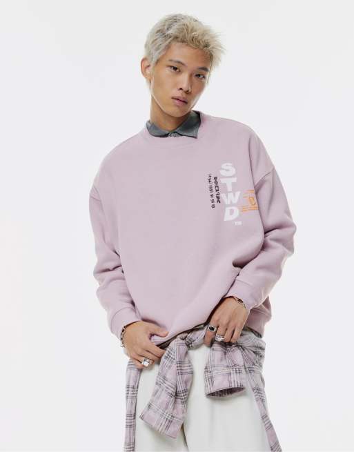 Pull&Bear - Stwd - Morbærrød sweatshirt med bygningsgrafik