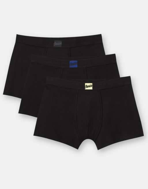 Pull&Bear - STWD - Pakke med 3 par sorte bokser med logodetalje i forskellige farver