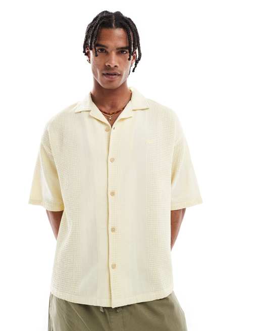Pull&Bear - STWD - Smørgul skjorte med korte ærmer og vaffeltekstur