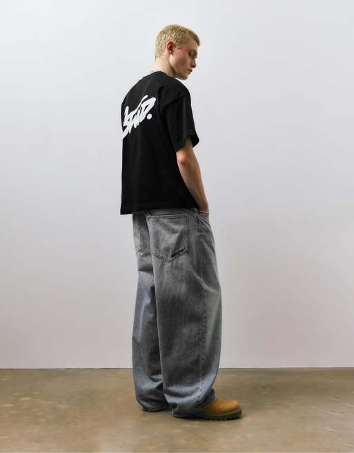 Pull&Bear - STWD - Sort T-shirt med firkantet pasform og logo