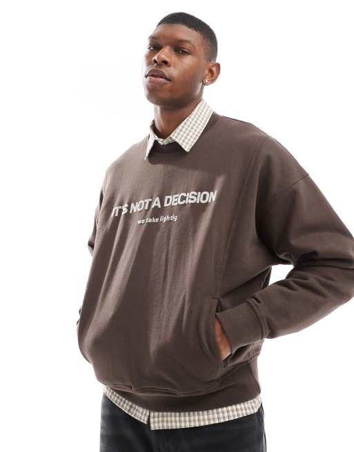 Pull&Bear - Vasket brun sweatshirt med 'It's Not A Decision'-print
